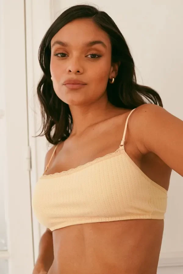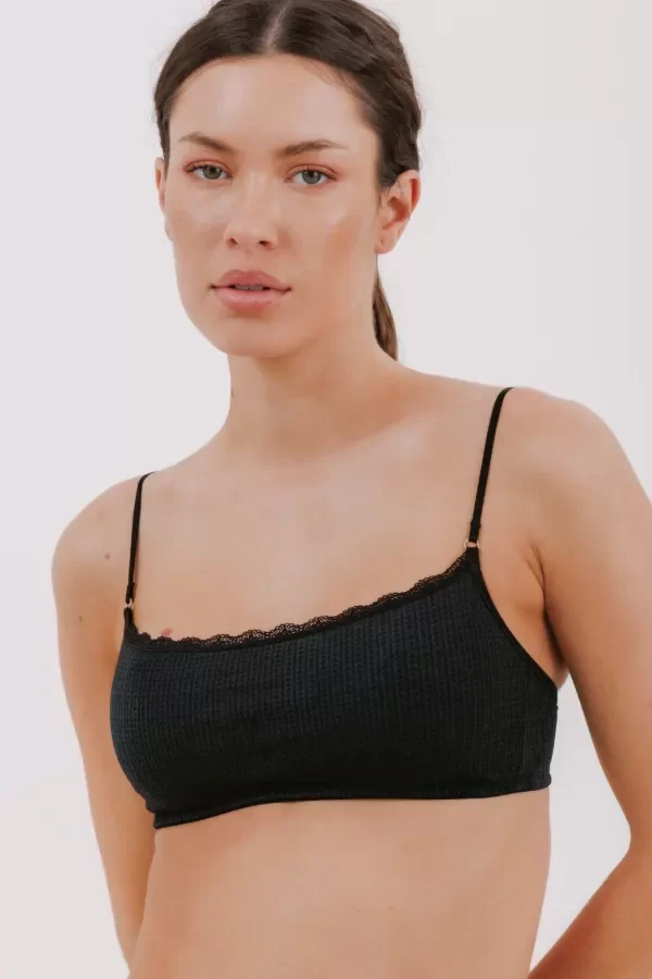 SOUTIEN TOP DE MICROFIBRA DESAGUJADA, FORRADO, CON ESCOTE DE PUNTILLA